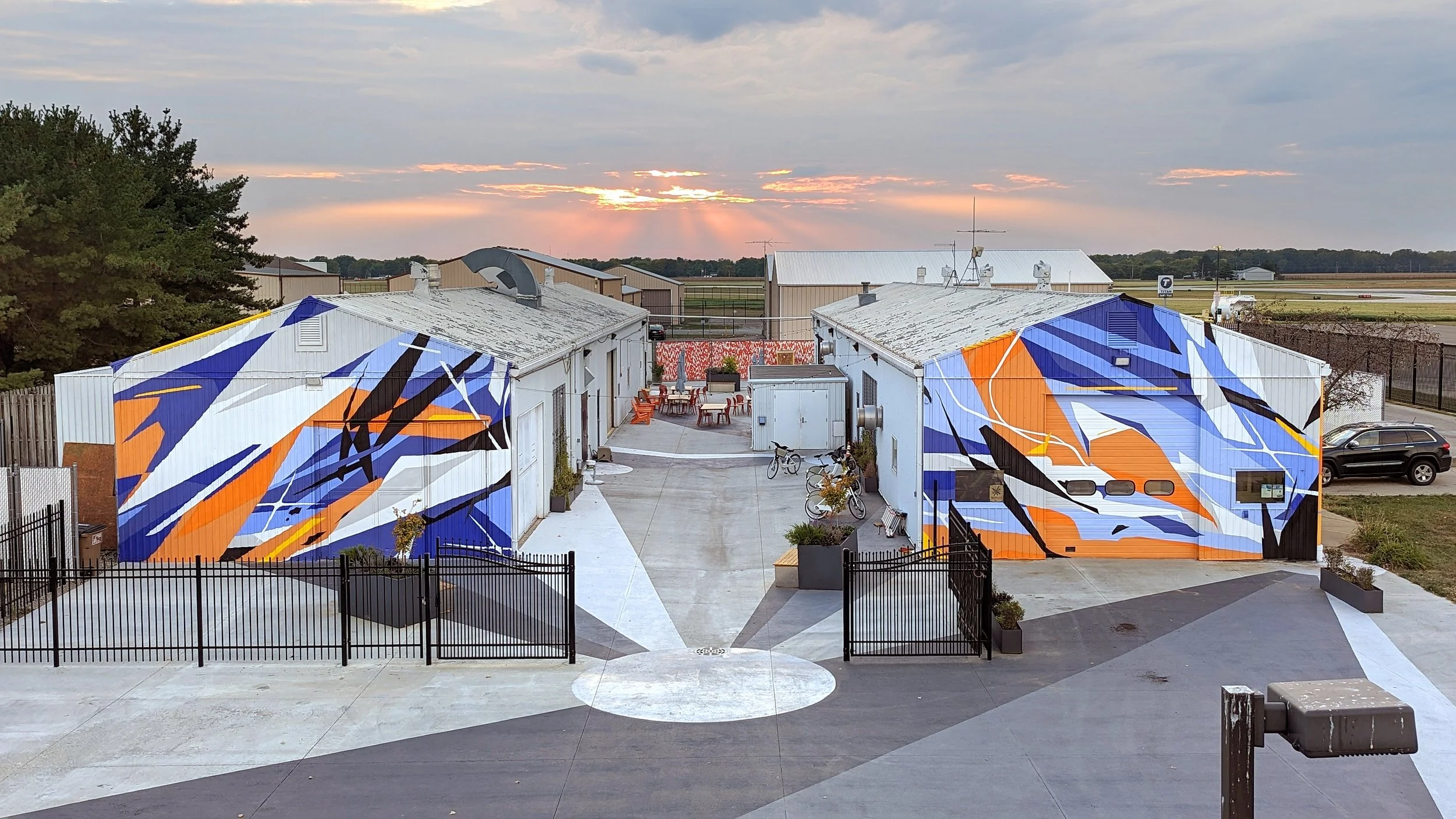 Nick Abstract is a contemporary mural artist specializing in bold geometric work that transforms spaces through color, structure, and scale. His approach is shaped by a unique perspective on color as a color-blind artist, resulting in striking and unconventional compositions. Originally from the east side of Indianapolis, he now lives at Heritage Lake and is proud to be part of the Danville community. Nick also helped curate the first ever Indy Mural Fest in 2019 which brought over 50 public art installations to the southside of Indianapolis.